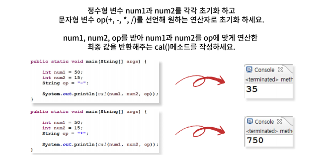 System.out.println(cal(num1, num2, op));