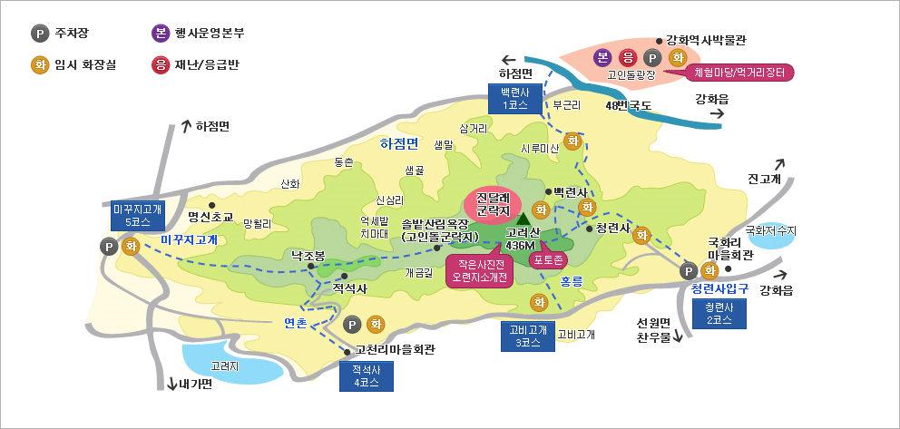자세한 내용은 강화군 문화관광 홈페이지에서 고려산 진달래축제를 검색하면 된다.
