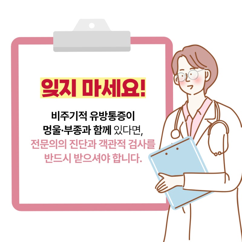 림프절이나 조직에 문제를 일으키는 염증성 질환인 경우 환부가 부어오르고 겨드랑이 양쪽에 림프절이 많이 생기는 경우도 있지만 이 경우 질환으로 인한 변화가 함께 나타나므로 확인 후 치료