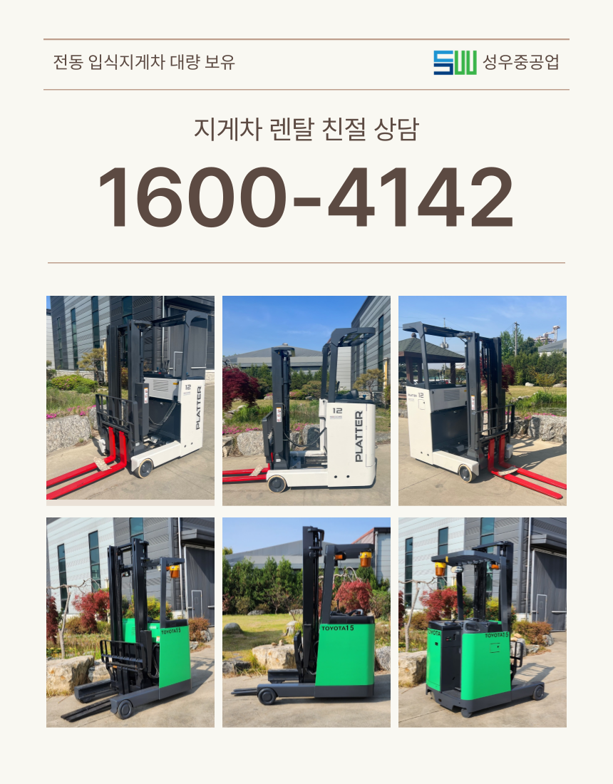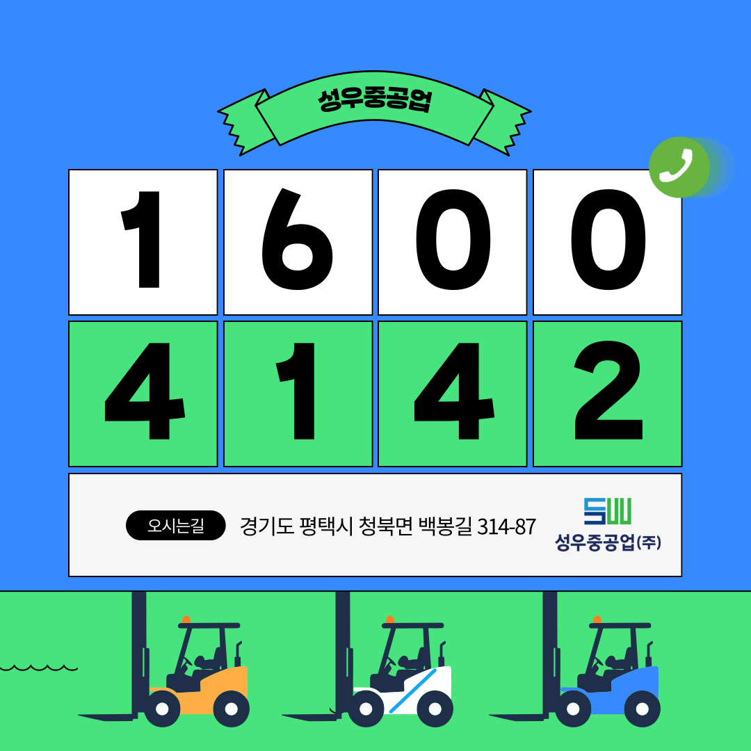 성우중공업 평택지게차 임대 상담을 받아보세요. 지금 1600-4142로 전화주시면 귀하의 작업환경에 맞는 맞춤형 지게차 렌탈 서비스를 제공해 드립니다. 합리적인 가격과 완벽한 유지보수 서비스를 갖춘 지게차 렌탈을 고려하고 계시다면 지금 바로 연락주세요! #평택지게차 #지게차대여 #평택지게차대여 #입식지게차 #좌식지게차 #전동지게차 #디젤지게차 #중고지게차 #성우중공업